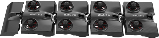 In order to solve the problem of adsorption method, R-storm adopts a semi-enclosed ducted power system design, which will generate a low air pressure effect inside the machine while generating strong thrust. The entire machine is as close to the work surface as a "ray", ensuring extreme stability and safety in any movement posture.
