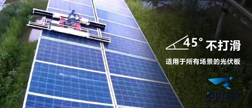 同时此款机器人即使在倾斜45°的斜面光伏面板上工作也不打滑、不跌落,可以说适用于所有场景的光伏面板。