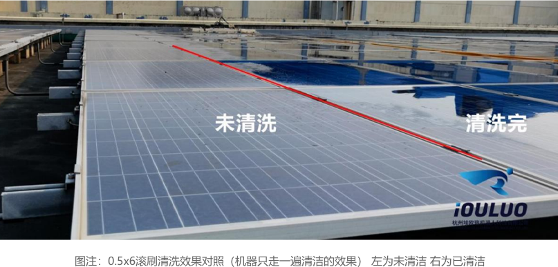 不久前,埃欧珞机器人与专业的光伏运维企业首次合作圆满成功,本次工作机器人为埃欧珞最新研发的光伏清洁机器人,该机器人由主体模块和清洁模块组成,经过多次反复计算和实验,机器人清洁组件部位与待清洁光伏面能够保持最佳距离,从而达到优于现有市面机器人及人工的清洁效果。同时对光伏清洁机器人的清洁模块进行了改造升级,采用2.2m双滚刷设计,每根滚刷密度规格达0.5*6排,所以在本次实施现场,光伏机器人无需反复清洁,只需清洁一次便可达到客户满意的效果。