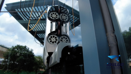 履带式清洁机器人是第一款实现储电储水并能实现污水回收循环再利用的玻璃幕墙顶的清洁机器人,定制的履带花纹和材质,能够保证机器在≤30°坡面上轻松进行清洁作业,实现行业从0到1的突破,在湿滑玻璃上还能保证一定的行走能力,广泛适用于机场、地铁口、停车库等场景。