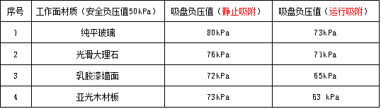 吸盘接触材料产生强大的吸附力,可在0-90°的场景中自由作业,抵抗150kg的外力,在17.2-20.7m/s的大风下亦可稳定吸附工作。
